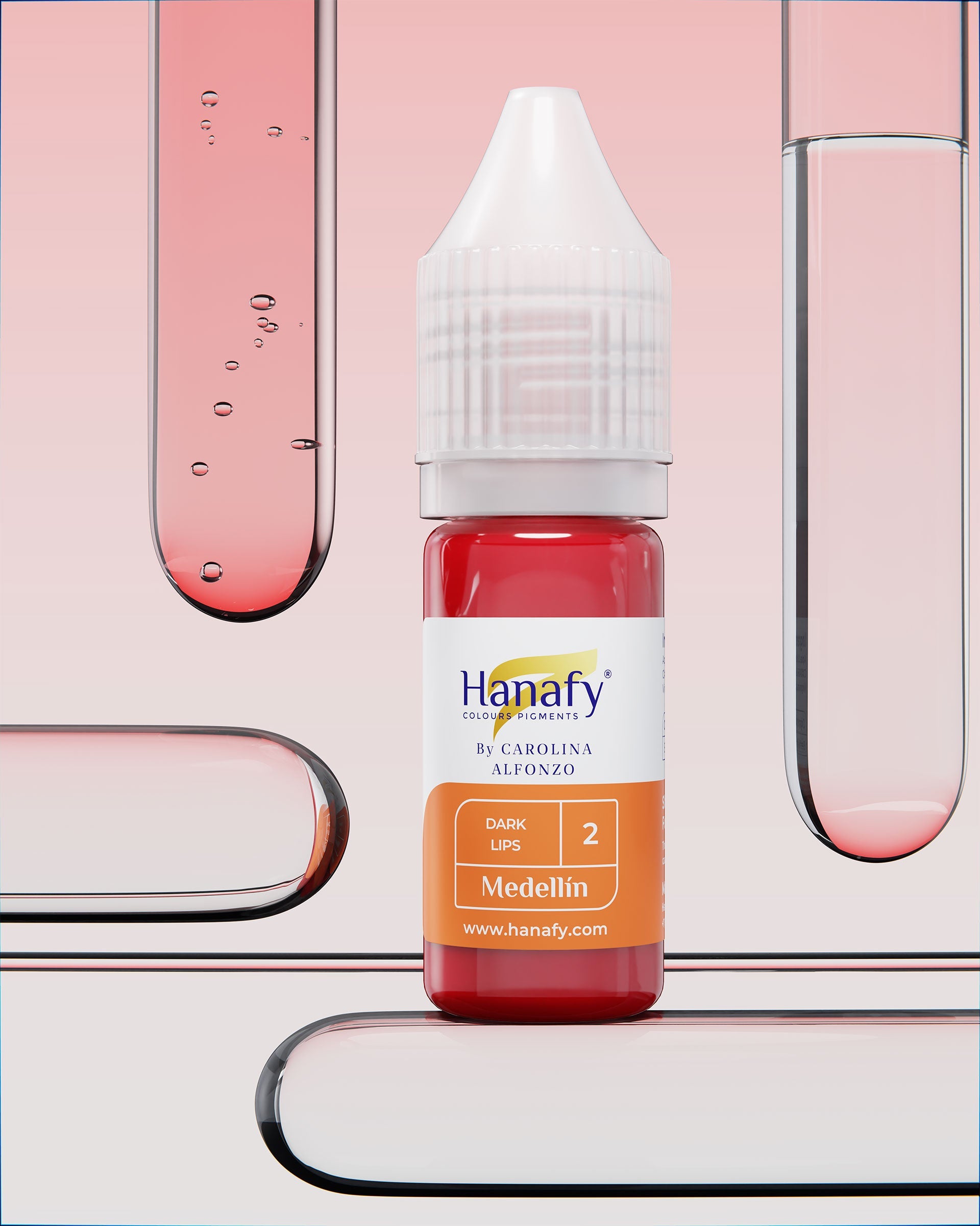 Bright pink pigment on an orange base. Best for dark brown lips, lips with a medium saturation and value. Can be also used in the second session to add a warm pink finish.